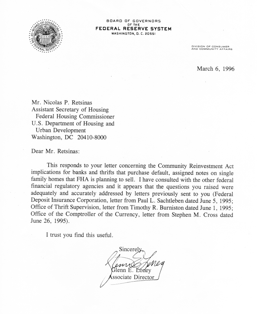 Corporation (FDIC), and the Federal Reserve. Letters from these